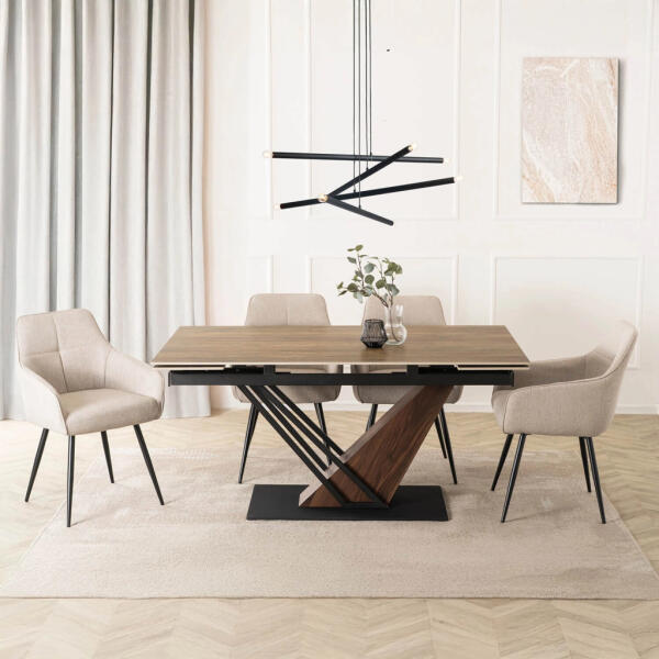 Bővíthető Étkezőasztal Sötét Tölgy/Fekete Színben. REX 160-220 cm (ME-ME-REX-CBRD-O-CER-S160-220)