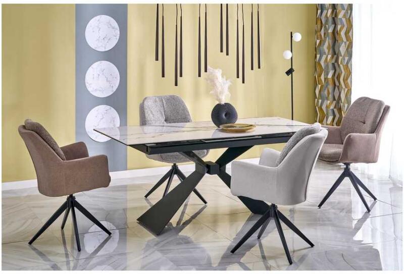 Amir étkezőasztalAz Amir étkezőasztal egy elegáns és modern megoldás minden étkező számára, amely magas minőségű anyagokból készült. A kerámia és üveg asztallap tartósságot és könnyű tisztíthatóságot biztosít, míg a stabil fém alap erős szerkezetet garantál. Az asztal téglalap alakú, ideális választás akár nagyobb társaságok számára is, hiszen bővíthető funkciójának köszönhetően akár 8 fő kényelmes elhelyezésére is alkalmas. Az alapértelmezett 180 cm hosszúsága meghosszabbítás után 230 cm-re bővíthető, így rugalmasan alkalmazkodik a különböző igényekhez és helyiségekhez. Az asztal magassága 76 cm, mélysége pedig 90 cm, amely kényelmes étkezést és elég helyet biztosít az asztalnál ülőknek. Főbb jellemzők Anyag: kerámia és üveg asztallap, fém alap Méretek: 180 cm hosszú, 90 cm mély, 76 cm magas Bővíthető hossza: 230 cm Téglalap alakú forma Maximális ülőhelyek száma: 8 fő Súly: 123,5 kg 5 év garanciaAz Amir étkezőasztal tökéletes választás azoknak, akik egy letisztult, mégis praktikus és tartós darabot keresnek otthonukba. Bővíthetőségének és stabil kialakításának köszönhetően hosszú távon is megbízható társ az étkezések során.