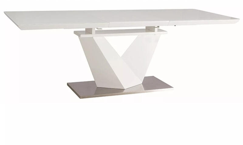 SIGNAL MEBLE Alaras III Modern Bővíthető Üveg-MDF Étkezőasztal Fehér Geometrikus Lábbal