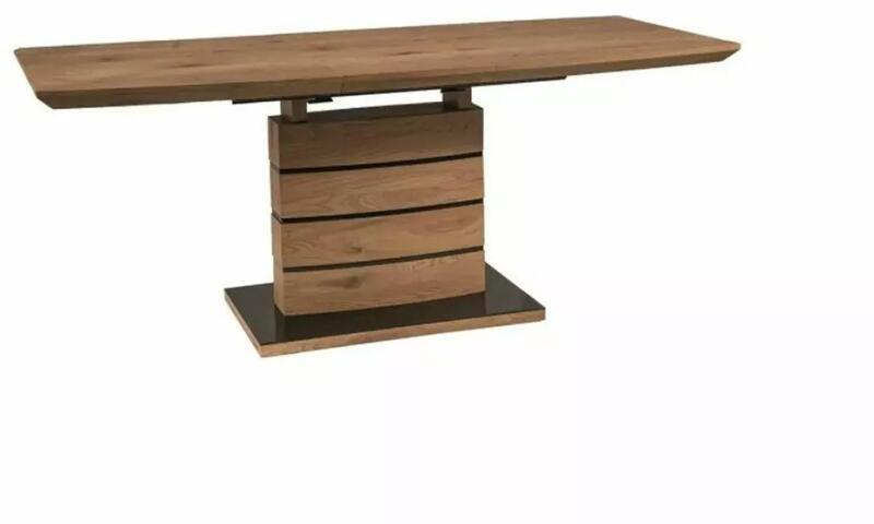 Kihúzható étkezőasztal LEONARDO| Tölgy A modern Leonardo kihúzható étkezőasztal minden modern otthonba illeszkedik. A tölgy színű árnyalat fényűző hatást kölcsönöz az asztalnak . Az étkezőasztal szálcsiszolt acélból és MDF-ből készült. Az étkezőasztal teteje MDF-ből és furnérból készült. Az asztal kibontva akár 8 fő elszállásolására alkalmas. csiszolt acél MDF üveg Az asztal kiváló minőségű anyagból készült, amely ellenáll a sérüléseknek és a nedvességnek. Az anyag garantálja a hosszú élettartamot és az Ön elégedettségét. Az anyag karbantartása is egyszerű . szélessége: 80 cm magasság: 76 cm hossza: 140-180 cm súlya: 68 kg max. terhelhetőség: 80 kg színválaszték: fekete, tölgy csomagok száma: 3