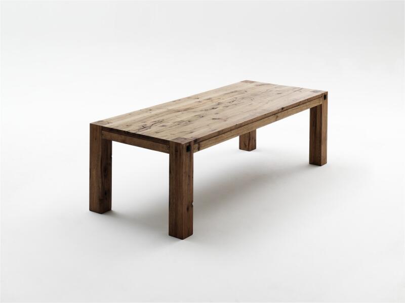 Étkezőasztal, lakkozott, tömör, csomós, bassano tölgy, asztallap vastagság a kerettel: 11 cm, 220 x 100 x 76 cm, lábak 14 x 14 cm