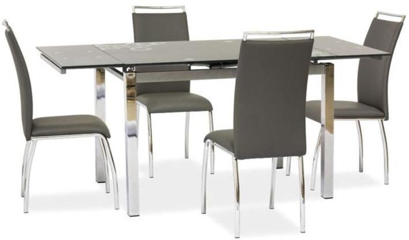 GD 017 bővíthető asztal /Szürke üveglap virág mintával Az ár csak az asztalra vonatkozik! Asztallap teteje : edzett üveg, Szín : szürke Váz:  krómozott fém Méretei: 75 cm    74 cm    110-170 cm 8 személyes - Mindigbútor